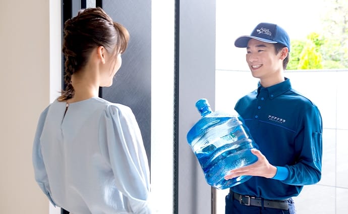 ご指定の日時にウォーターボトルの宅配、返却にお伺いしております。配送業者ではなく、専任の宅配スタッフ(アクアクララポーター)がお伺いしますので、安心です。