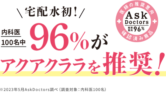 ※料金は、消費税込み及び2年割プラン(2年毎のお申込み・自動更新)適用時の金額です。 ※料金、本数は目安となります。 ※アクアウィズは別途ネスレ定期お届け便の利用料が必要です。ネスレ定期お届け便についてはネスレページ内の「ご利用に関する注意事項」をご確認ください。 ※ウォーターボトル(お水代)は軽減税率対象商品です。 ※『あんしんサポート』とは、専門スタッフによる配達設置、サーバーの定期メンテナンス、故障対応を含むアクアクララを安心・快適にご利用頂くためのサービスです。