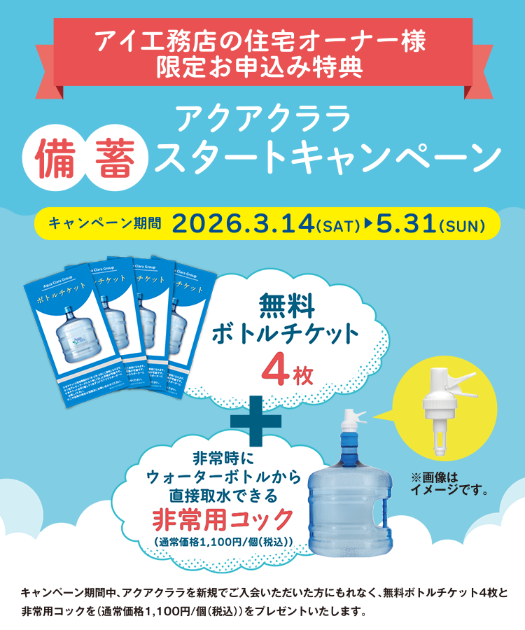 ![<もれなく>初回無料特典![特典1]設置月のあんしんサポート料[特典2]お水通常2本のところ今だけさらに1本増量で合計3本](/clp/inc/campaign/img/tv/tv_cp_img2.png)