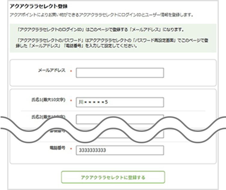 ※会員サイト「マイアクア」にご登録いただいていない場合、ポイントは付与されません。