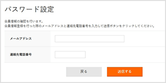 次にパスワードいただくため、ステップ②でご登録いただいたメールアドレスとお電話番号をご入力ください。