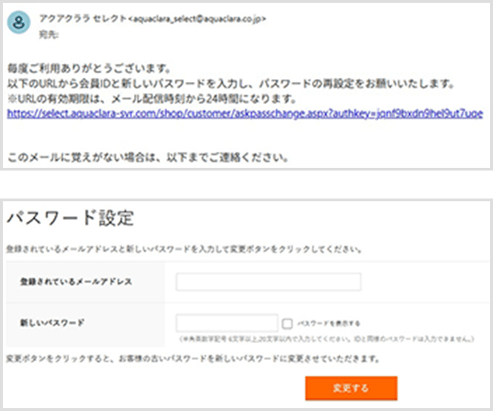 「アクアクララセレクト」からのご登録いただいたメールアドレス宛にURLをお送りします。